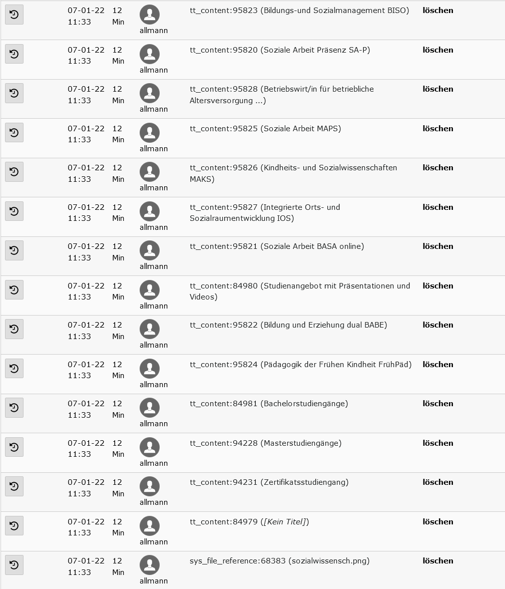 - [Typo3] Fwd: Typo3 Datensätze wiederherstellen, Sibylle Treude, 07.01.2022